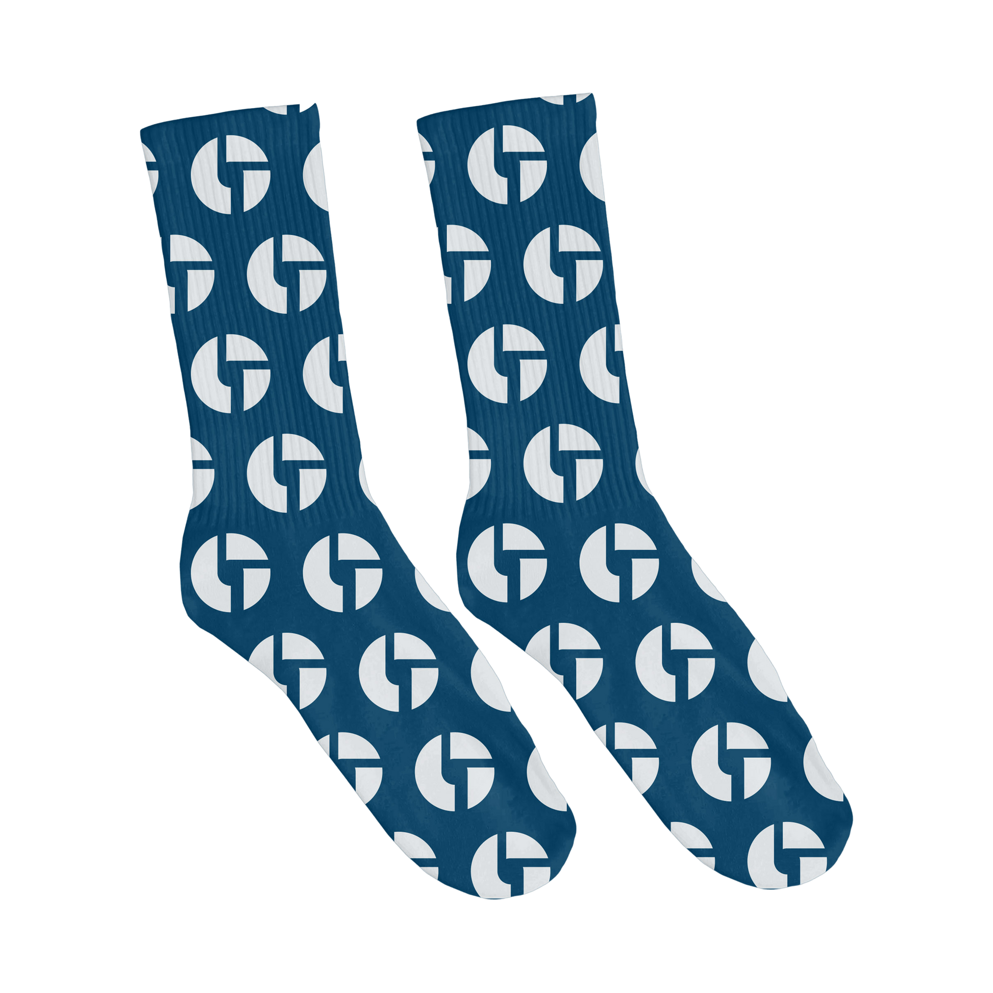 TDB Logo printed on custom socks. Available in green/red or blue/white. One Size Fits Most