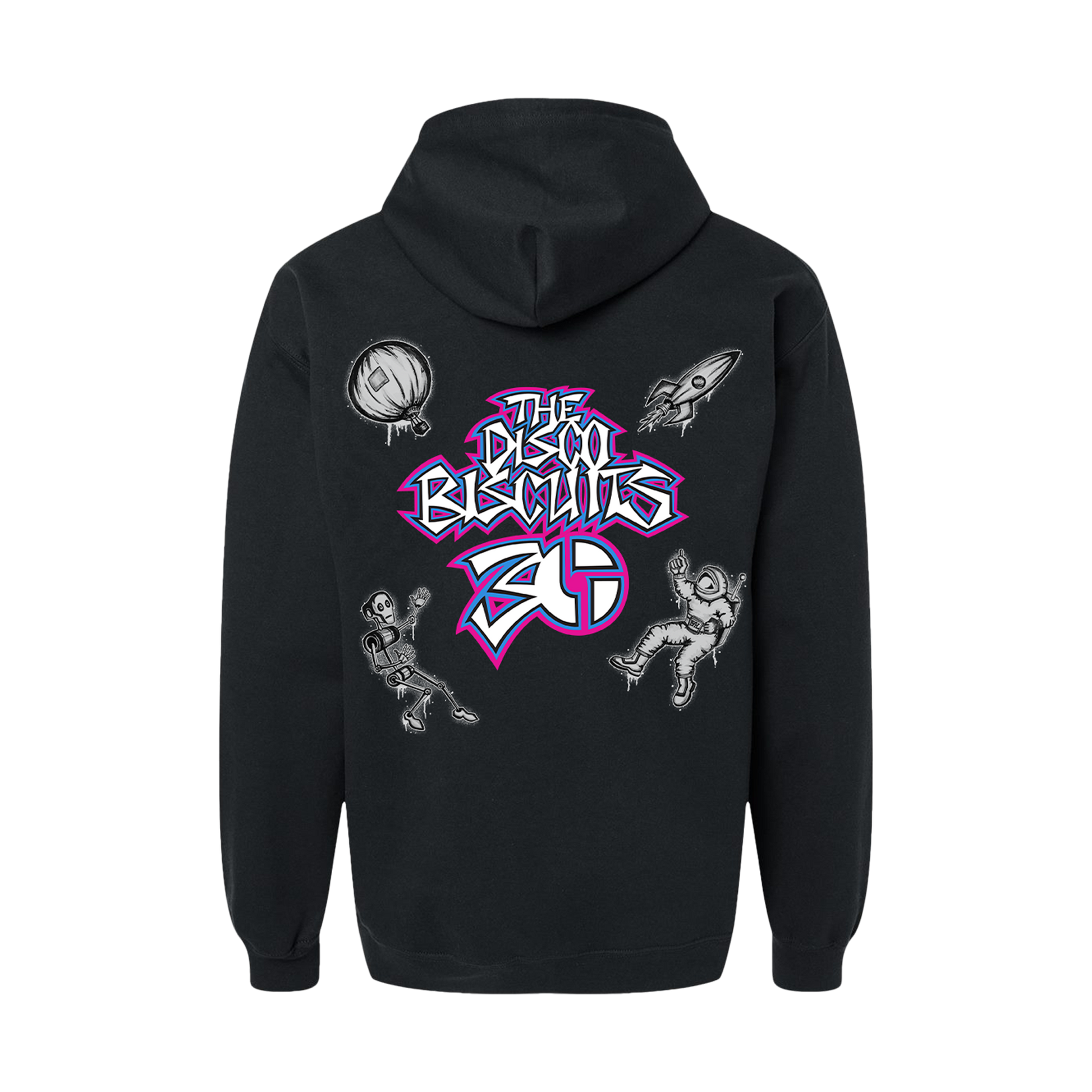 Screen printed on 80/20 cotton/poly perfect for repping three decades of jams in comfort and style.